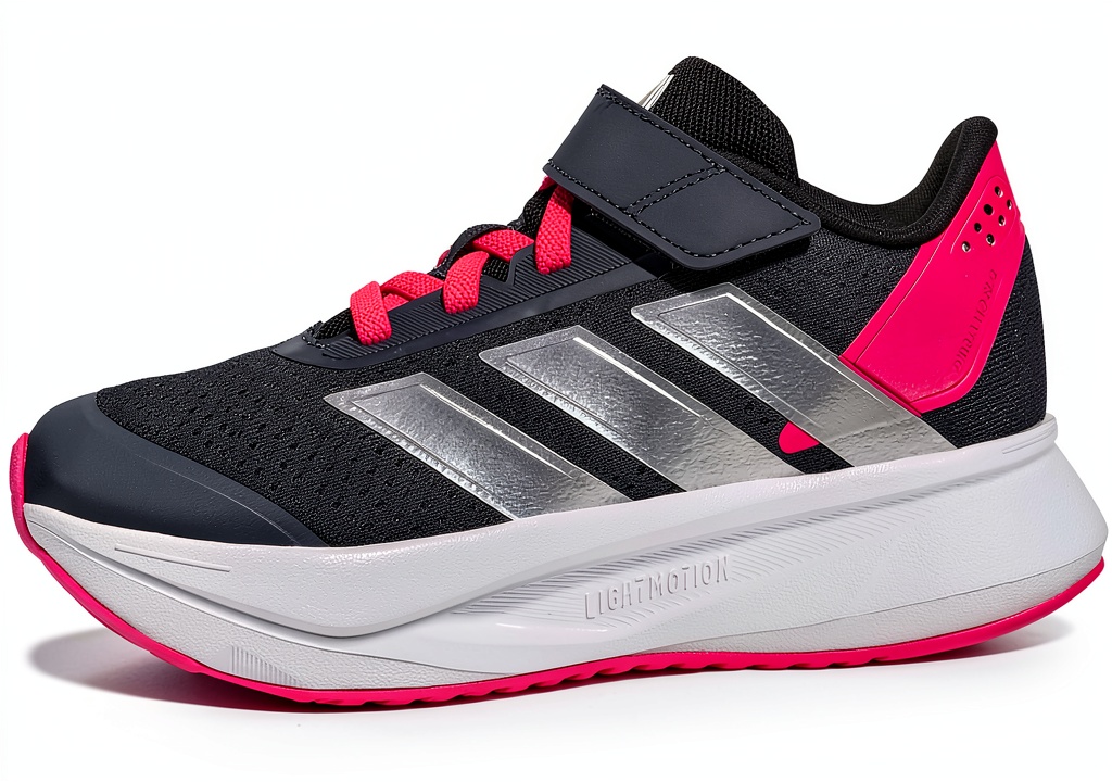 These adidas kids’ fitness shoes are engineered for young explorers, featuring a sandwich mesh upper that ensures breathability and lightweight comfort. The LIGHTMOTION cushioning provides superior support for running and playing, while the EVA outsole delivers excellent grip and durability. Available in Shadow Navy/Silver Metallic/Lucid Pink, these unisex-child shoes come in various sizes from toddler to big kid, with an elastic lace system and adjustable hook-and-loop strap for easy wear.